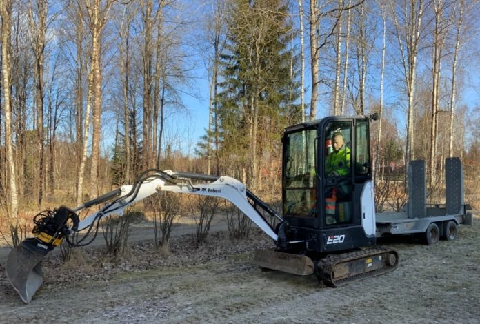 The machine is sold together with trailer, tools and tiltrotator.